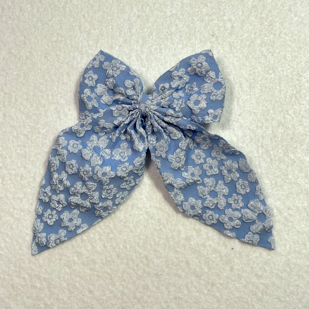 Elegantní dětská mašle z jemné látky s květinovým vzorem v modré barvě. Praktický a stylový doplněk pro zvláštní příležitosti i každodenní nošení, který dodá každému outfitu šarm a eleganci.