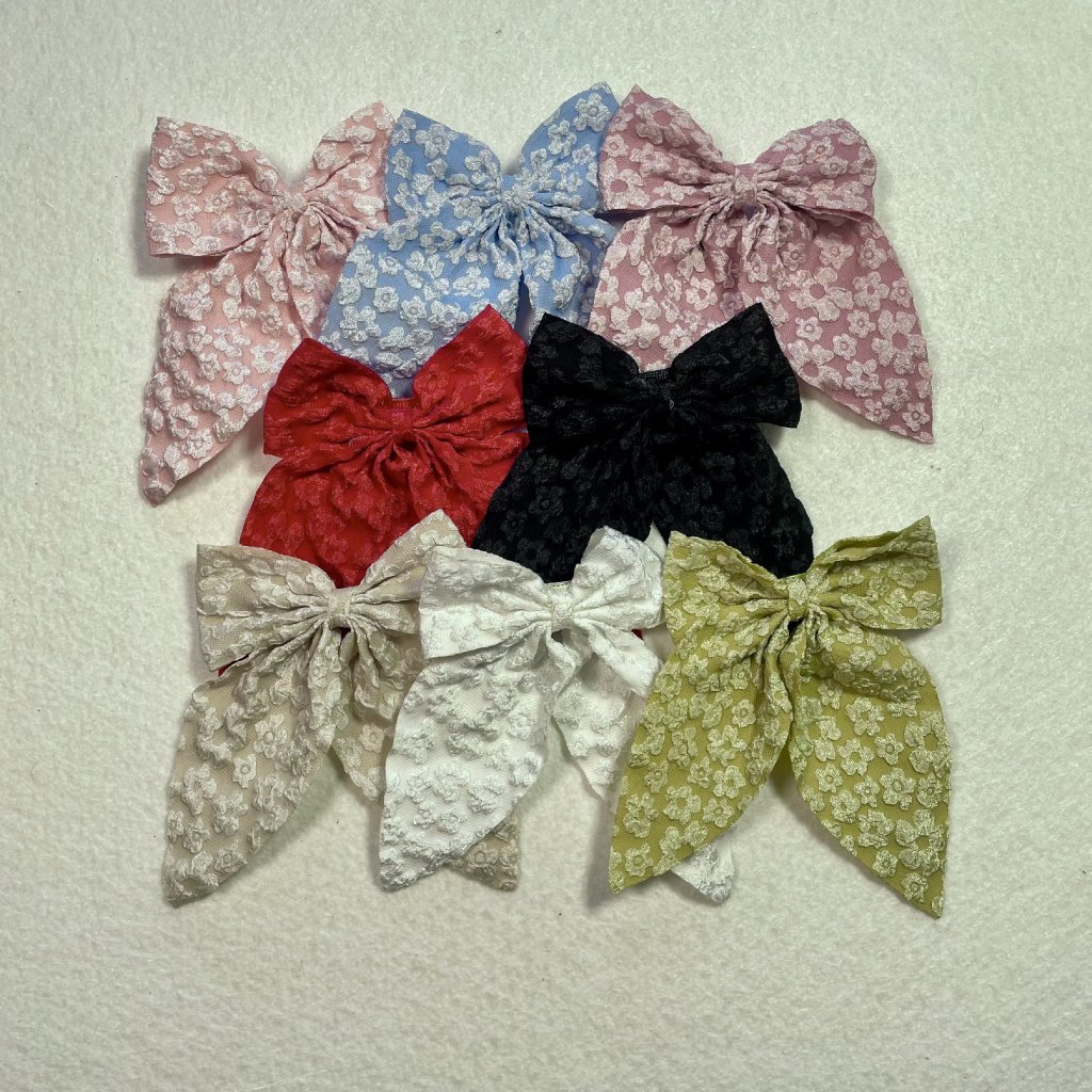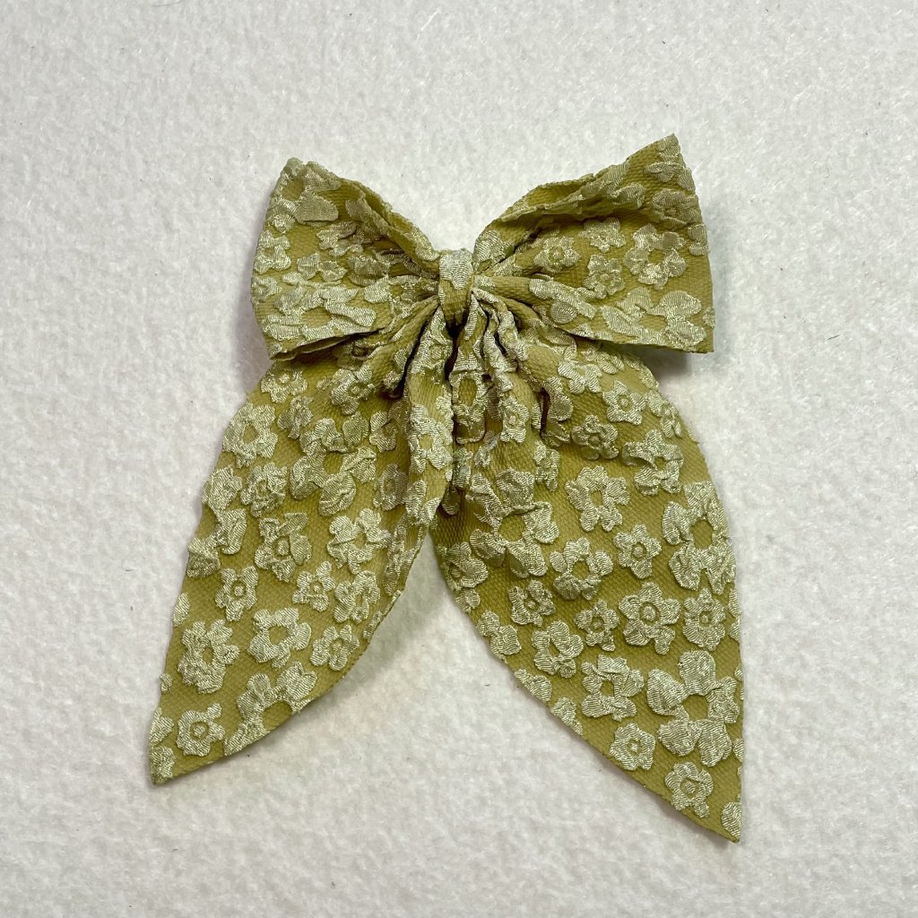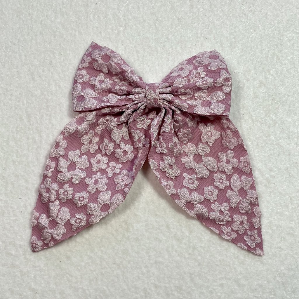 Elegantní dětská mašle z jemné látky s květinovým vzorem v různých barvách.