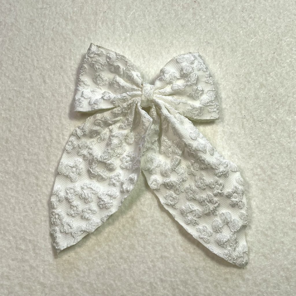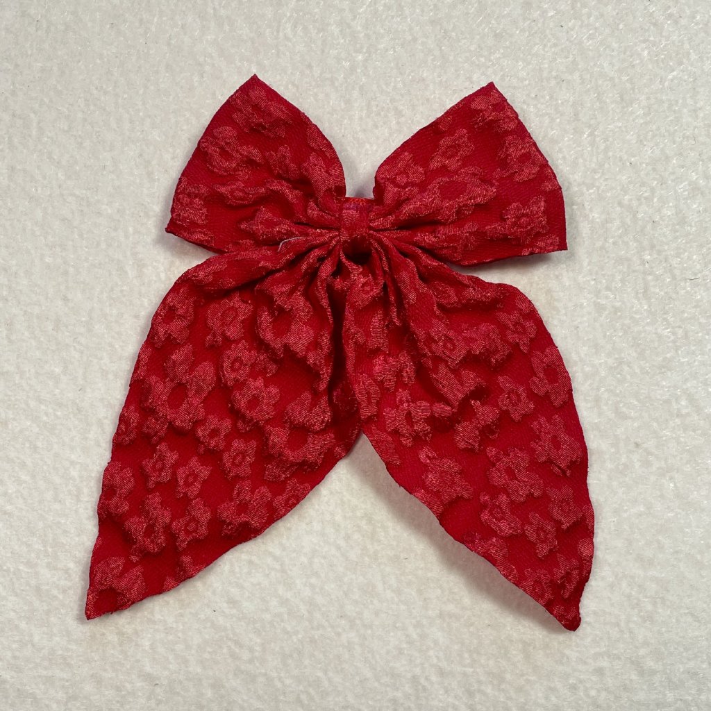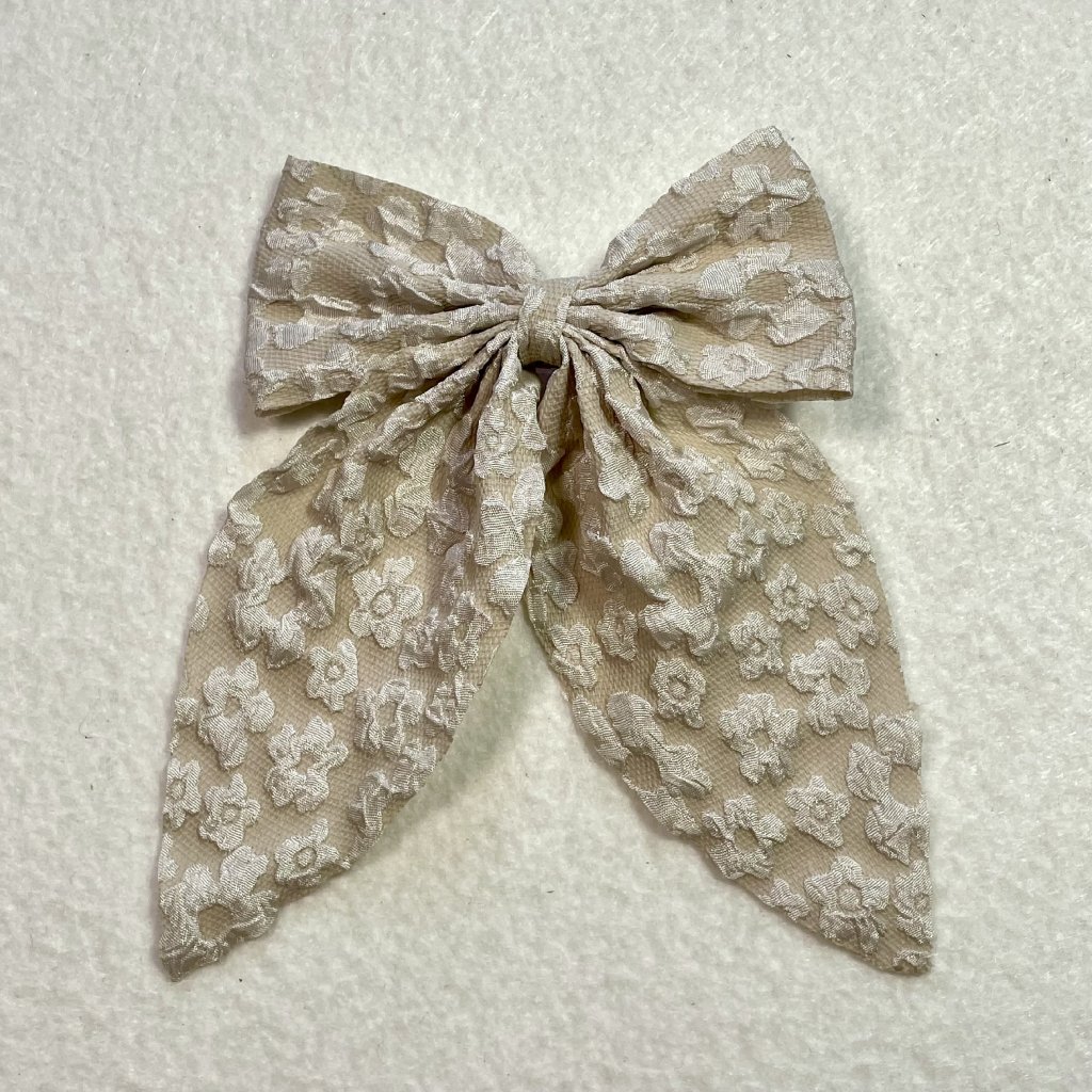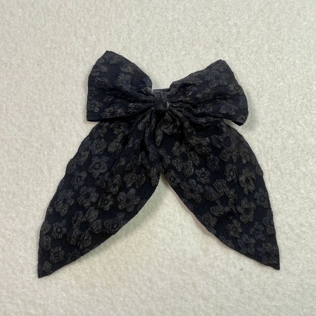 Elegantní dětská mašle z jemné látky s květinovým vzorem v různých barvách.