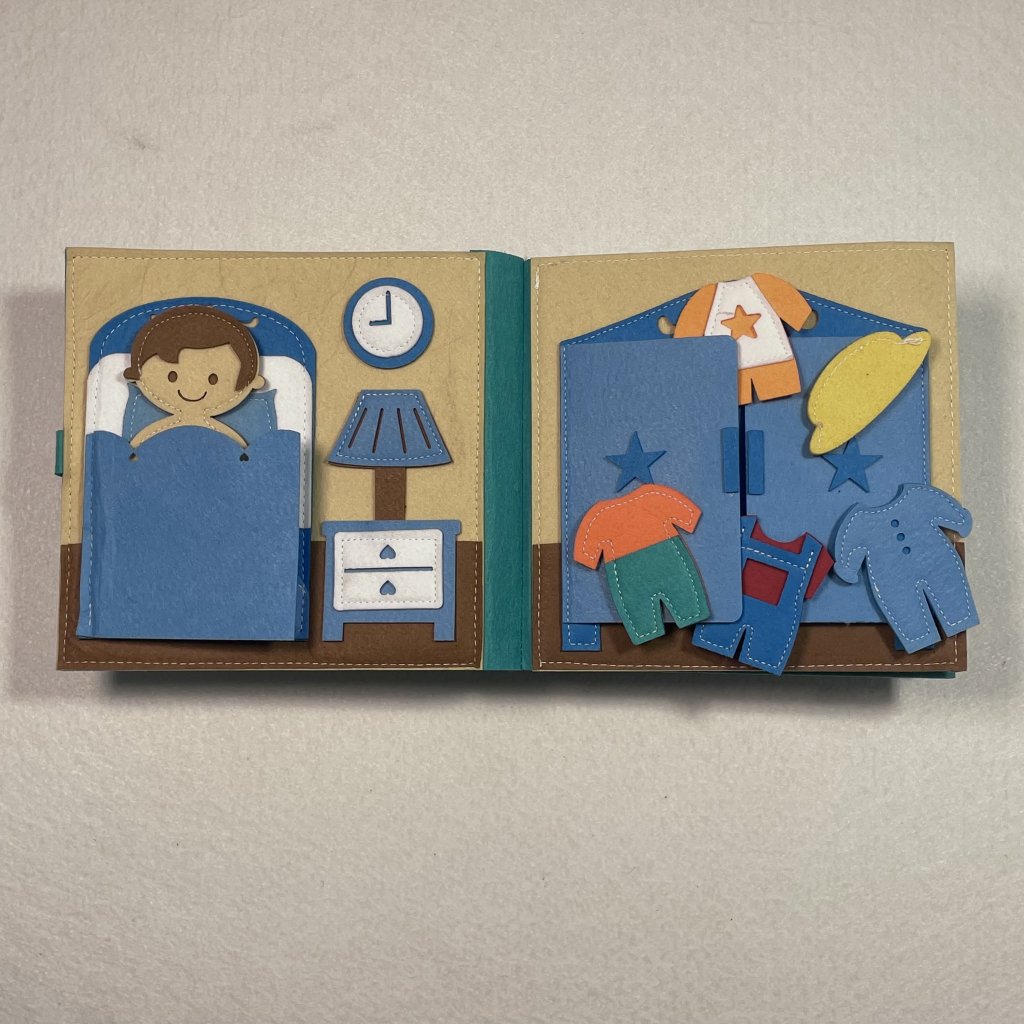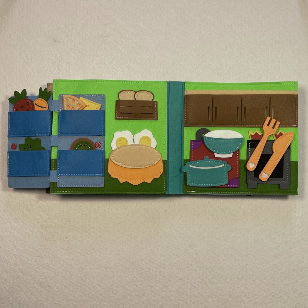 Interaktivní senzorická kniha pro děti. Učební hračka s měkkými stranami z filcu, pro rozvoj motorických dovedností.