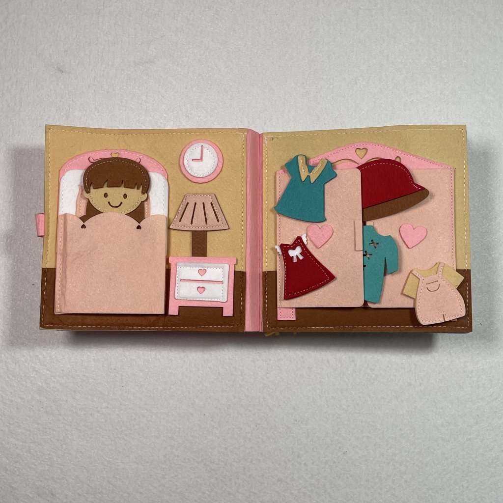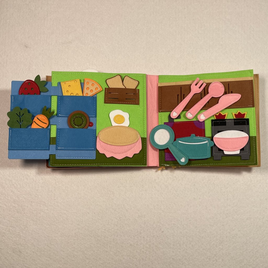 Interaktivní senzorická kniha pro děti. Učební hračka s měkkými stranami z filcu, pro rozvoj motorických dovedností.